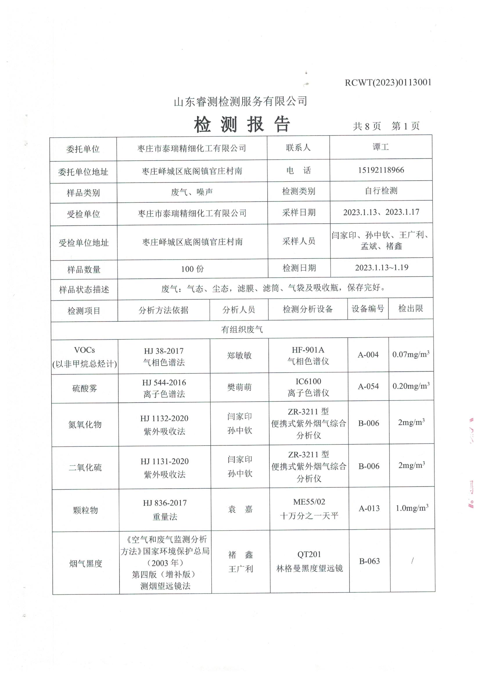 2023年第1季度檢測(cè)報(bào)告