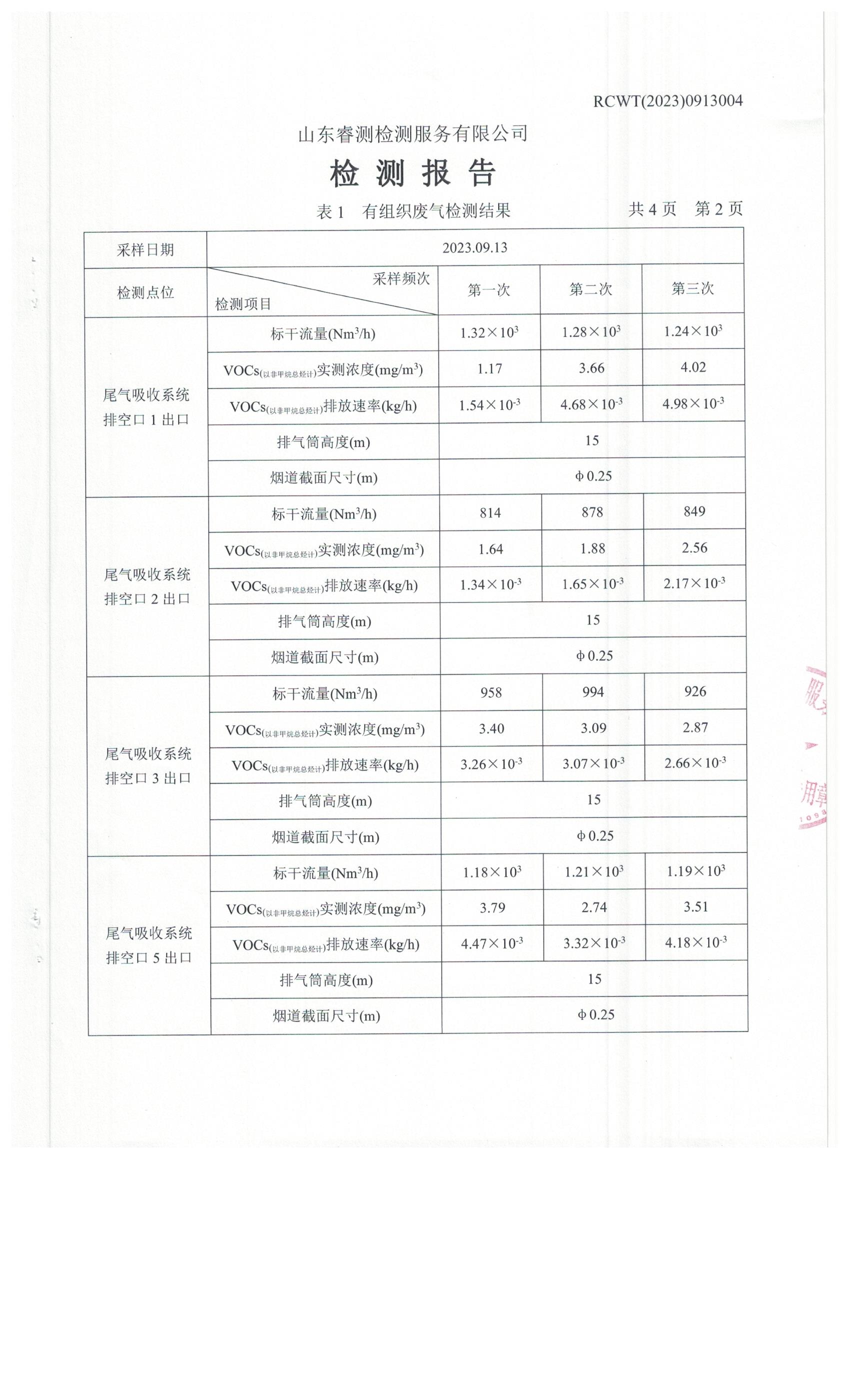 2023年第3季度(8月份)檢測報告