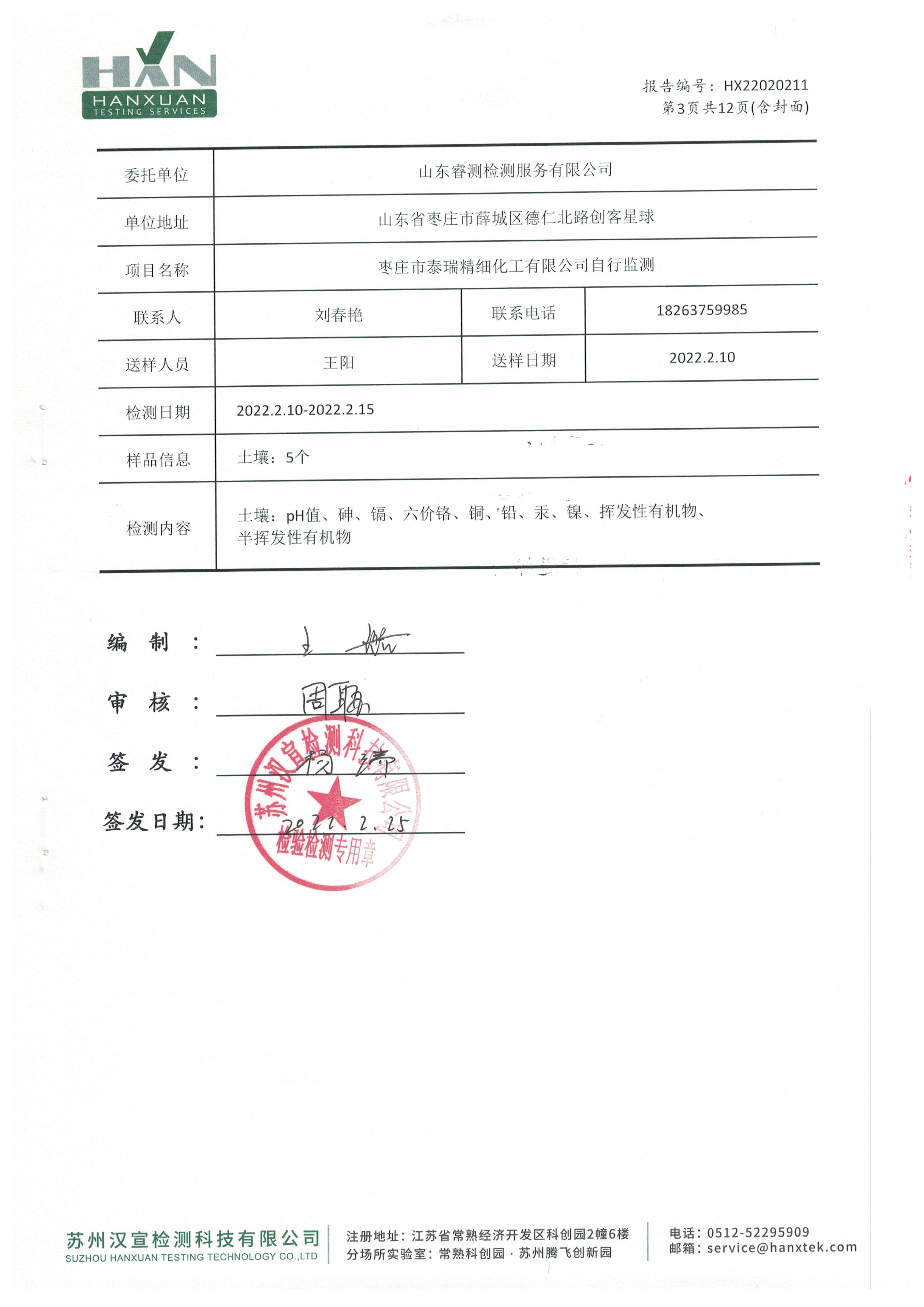 2022年2月份及第一季度自行檢測(cè)報(bào)告