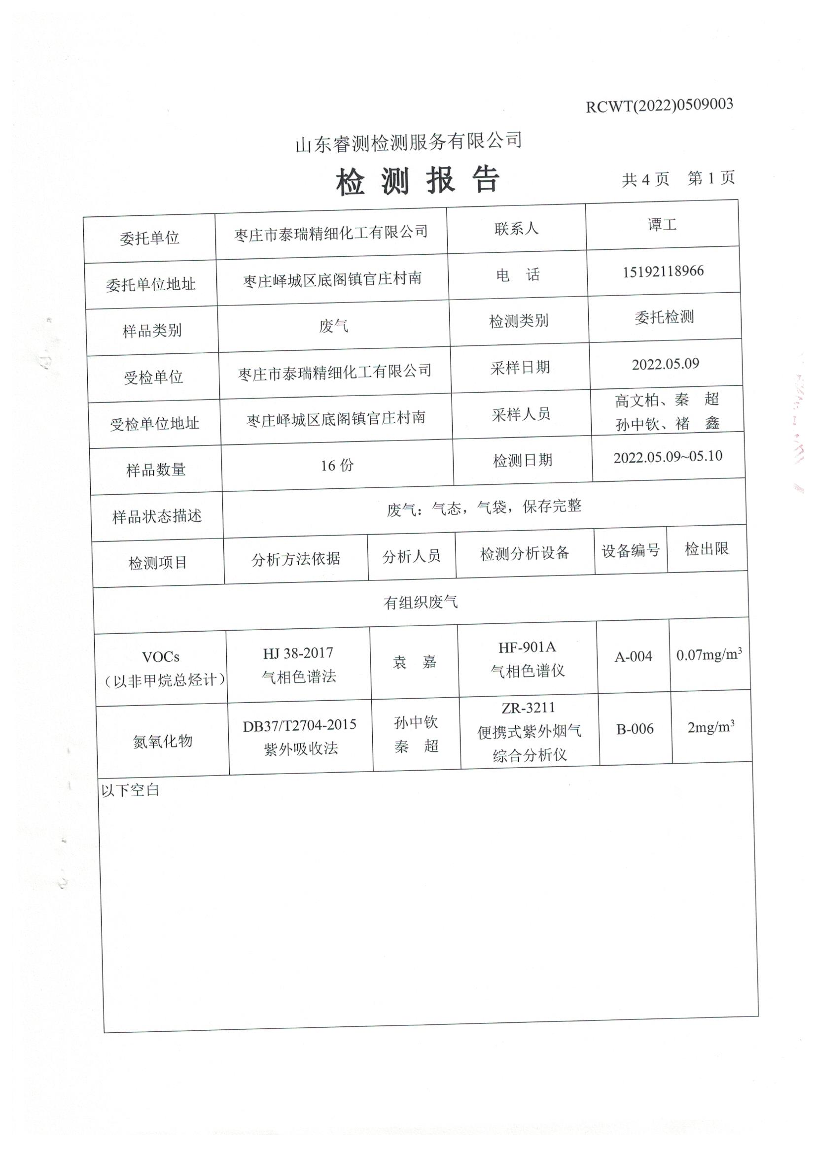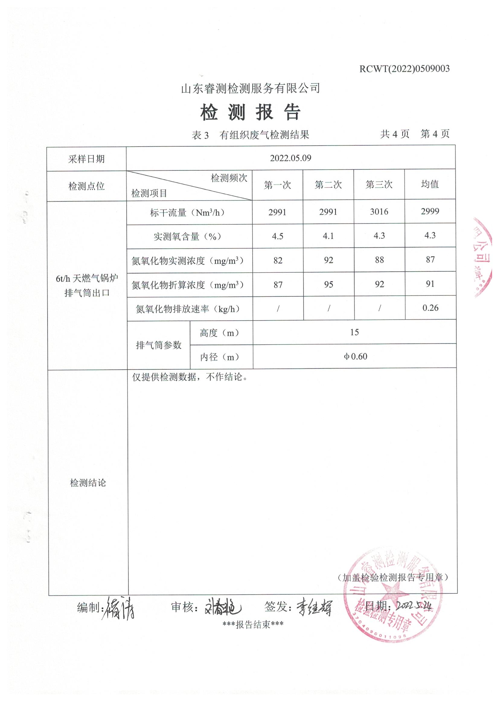 2022年5月份自行檢測報(bào)告