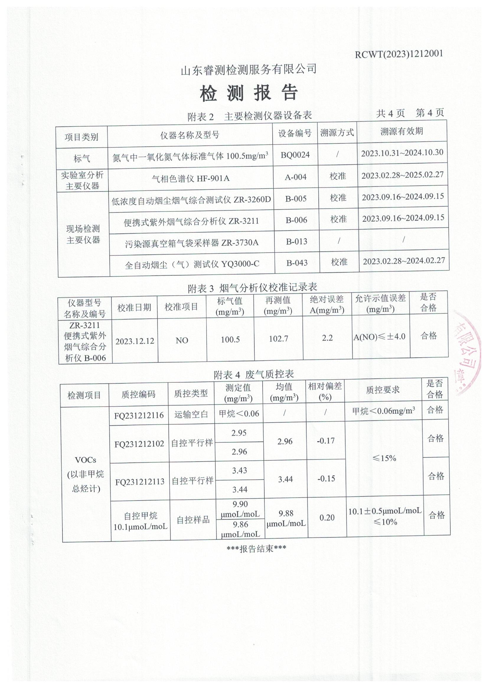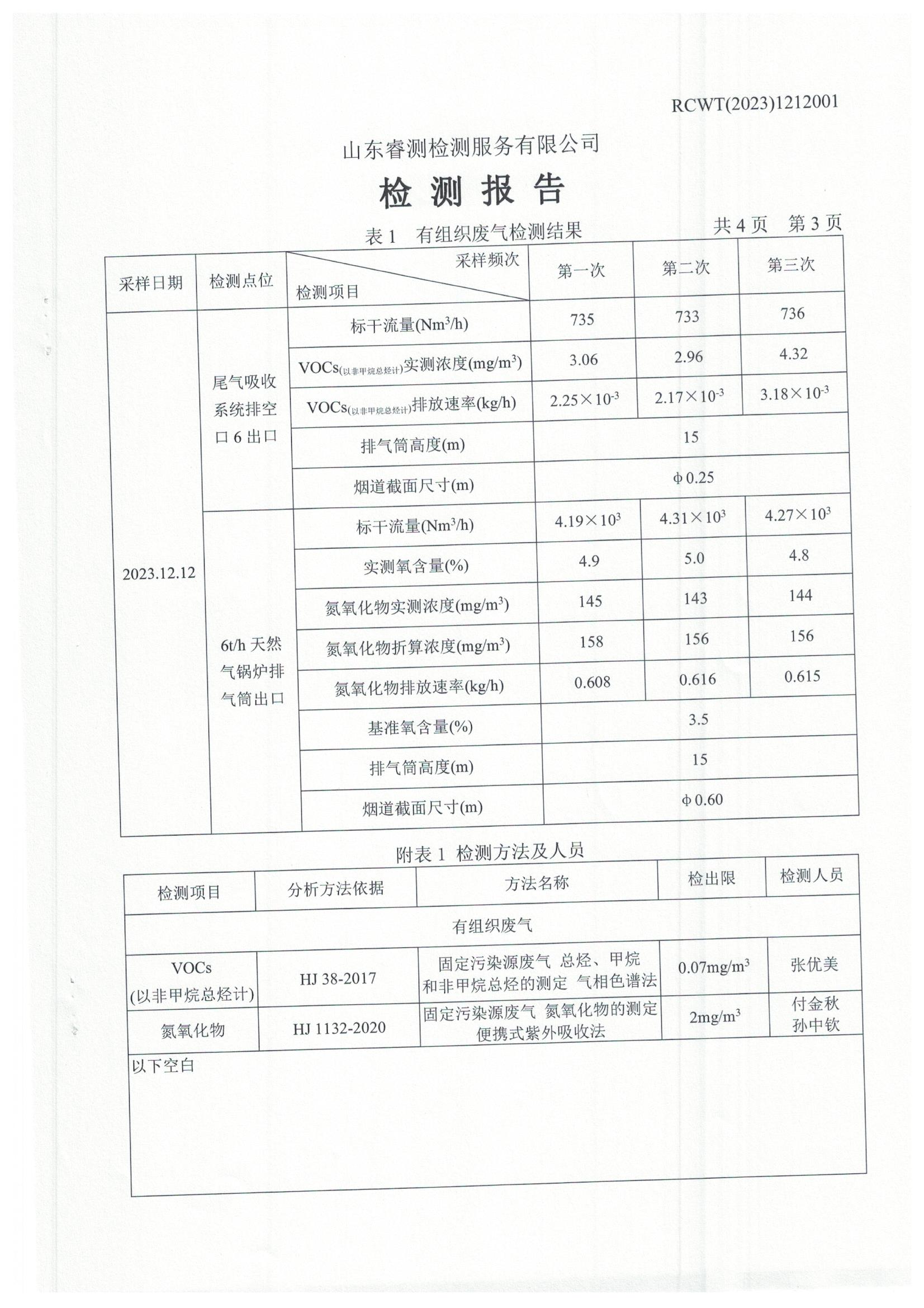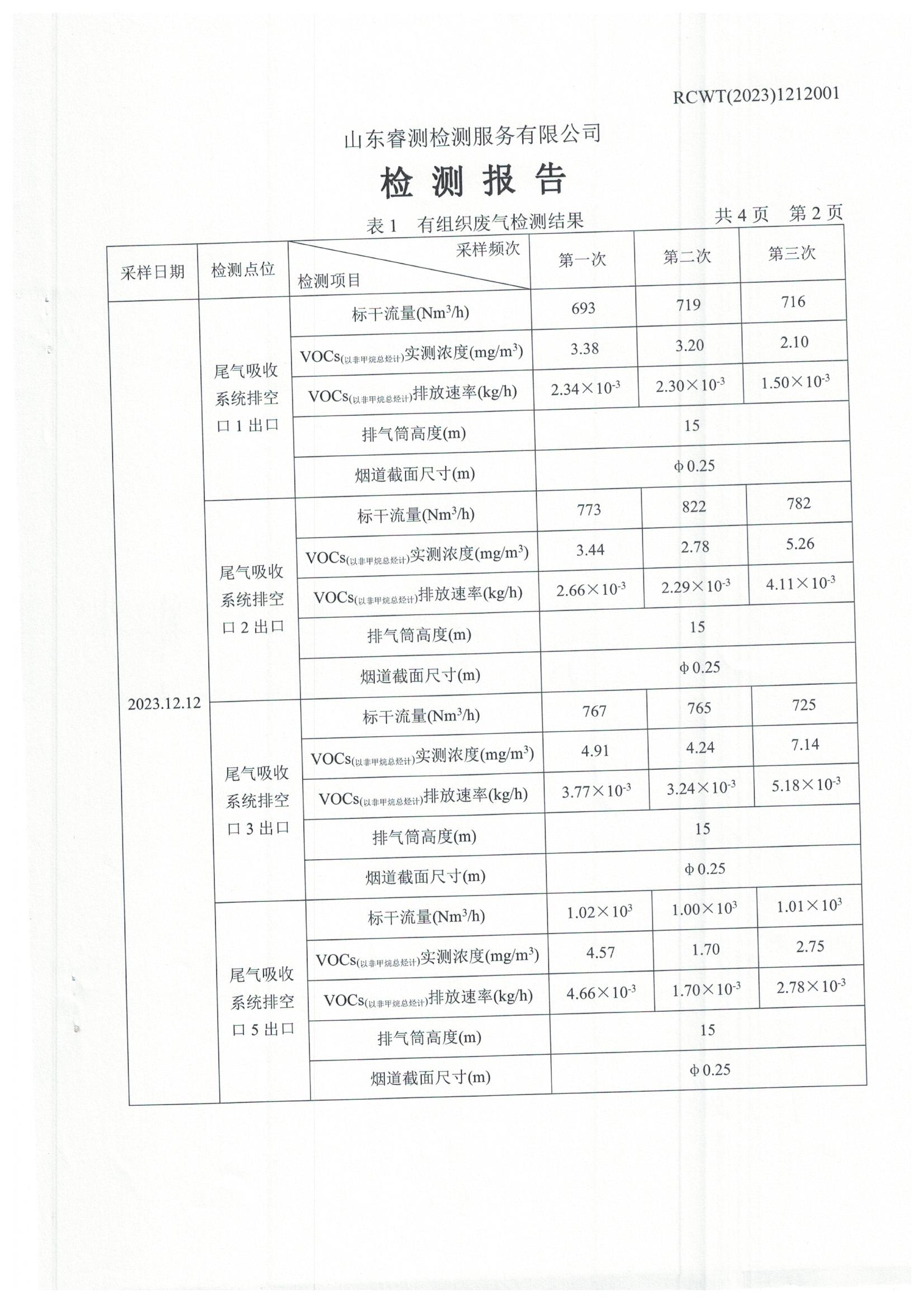 2023年第4季度(12月份)檢測報告