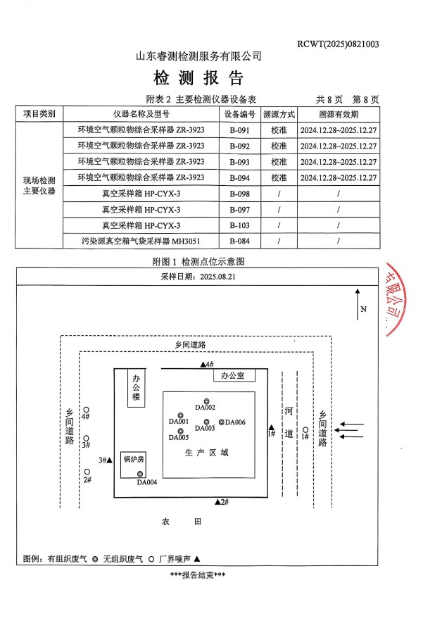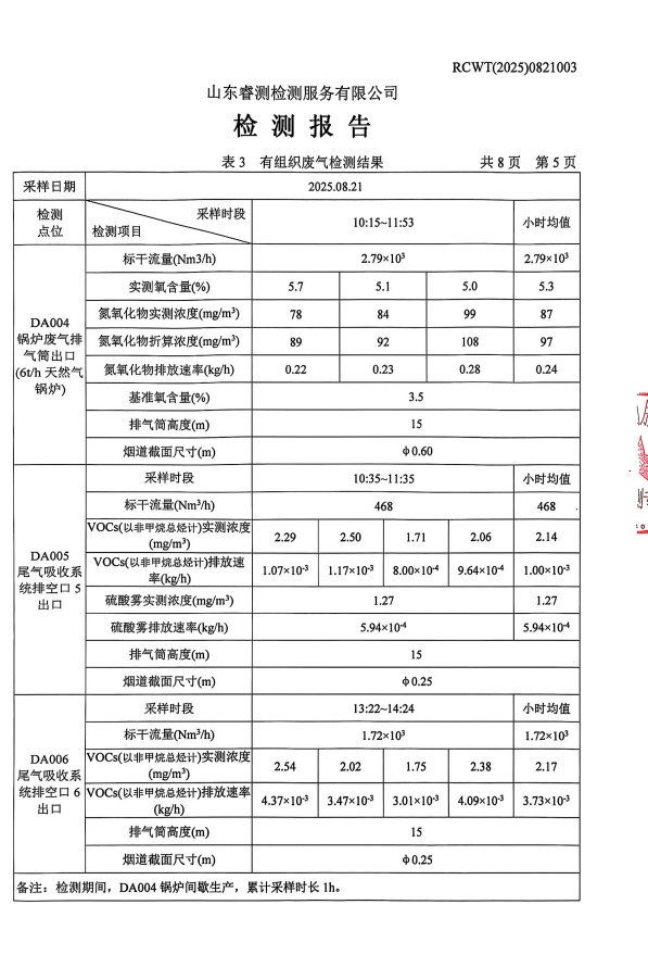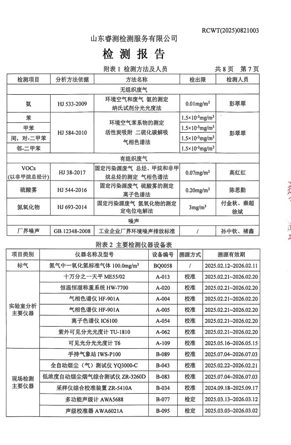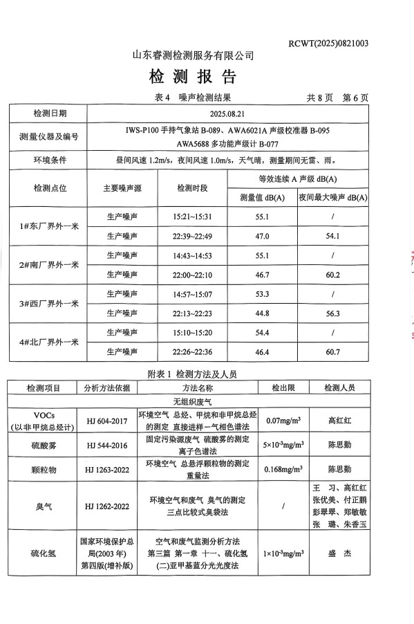2025年8月廢氣、噪聲檢測報告