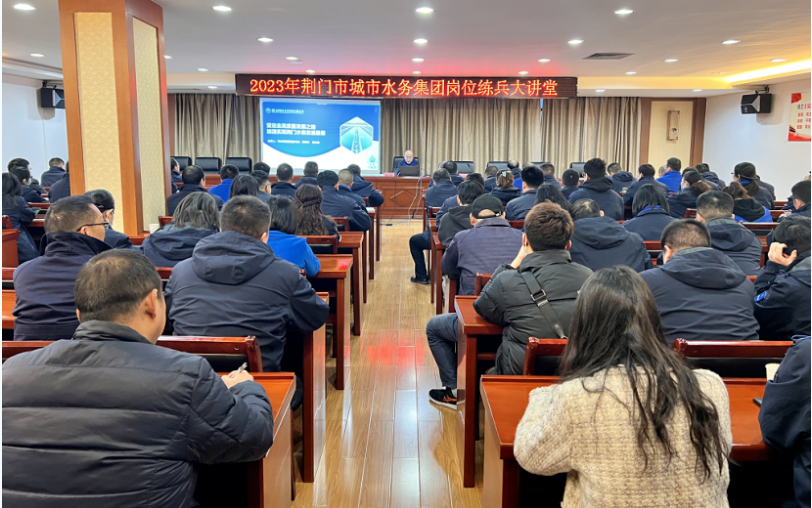 集團黨委書記、董事長陳永根以《堅定走高質(zhì)量發(fā)展之路 加速實現(xiàn)荊門水務發(fā)展愿景》為主題,為全體干部職工帶來了一場精彩的授課。