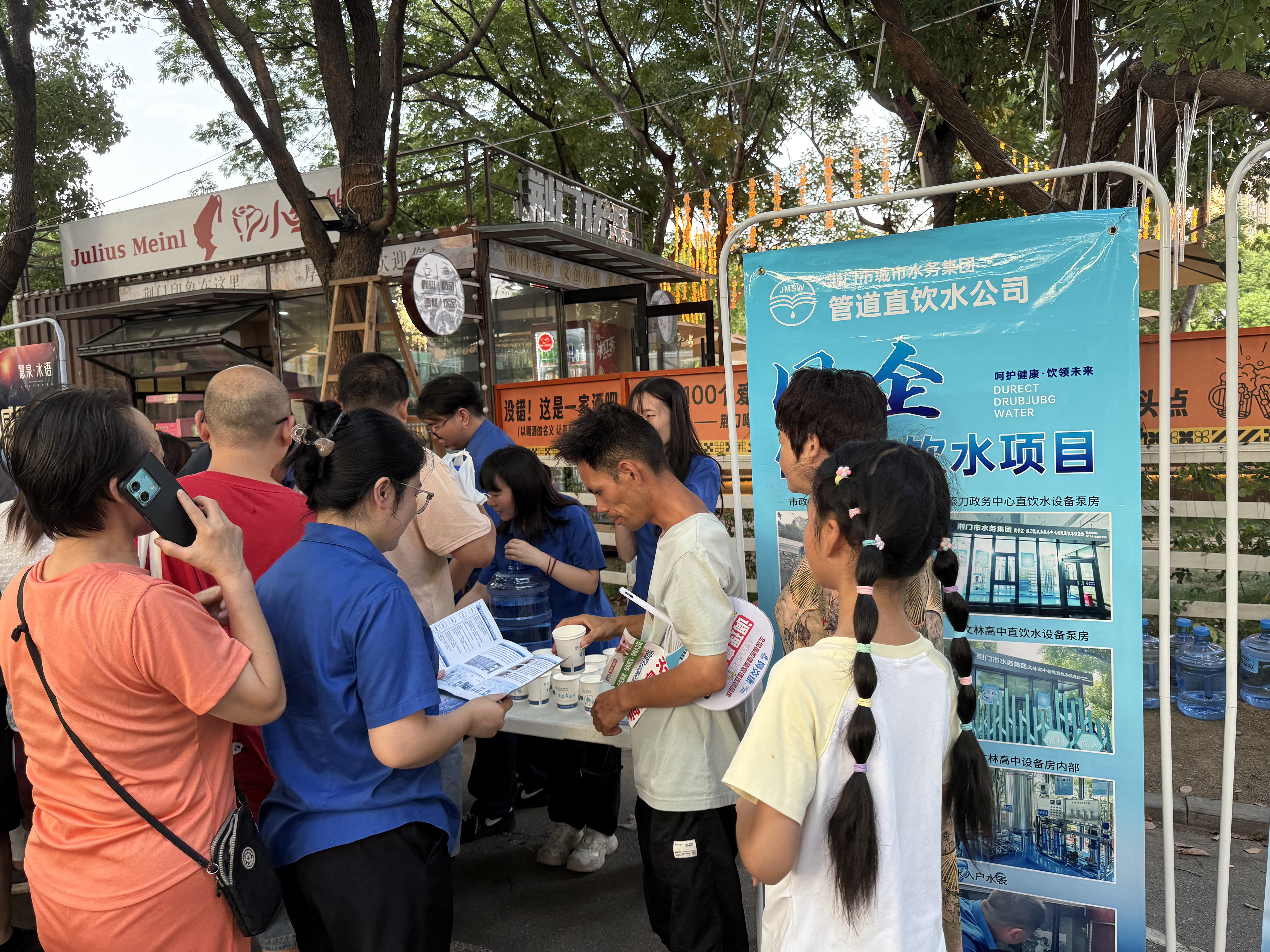 7月29日晚,市水務(wù)集團(tuán)慧泉房產(chǎn)公司攜手龍泉直飲水公司,帶著清涼好禮,結(jié)伴奔赴生態(tài)運動公園“逛夜市,趕大集”。